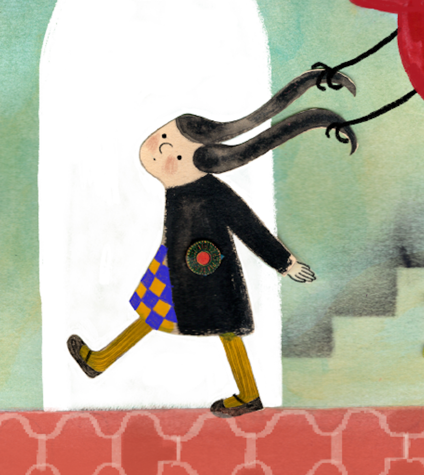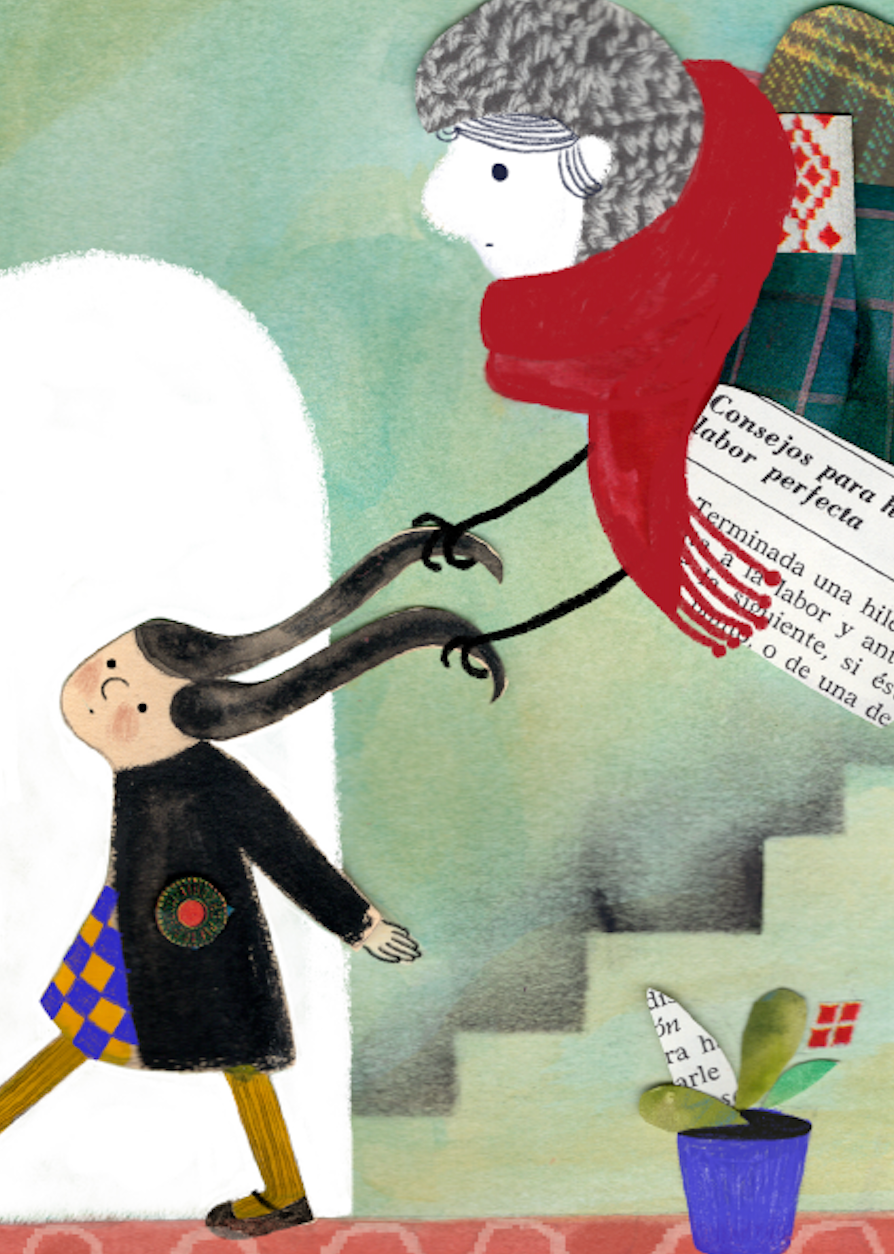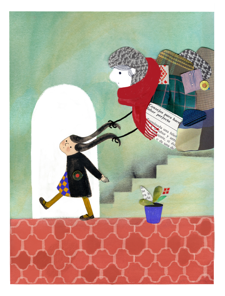 No quise representar a la ansiedad como un enemigo, sino como una presencia que, aunque pesa, también intenta proteger. Como un viejo abrigo que insiste en envolverte, incluso cuando el clima es templado. Quise que la figura que sigue al personaje se sintiera llena de recuerdos, miedos e inseguridades, pero sin ser amenazante; al contrario, con un gesto casi cuidadoso." - Quica Martínez.